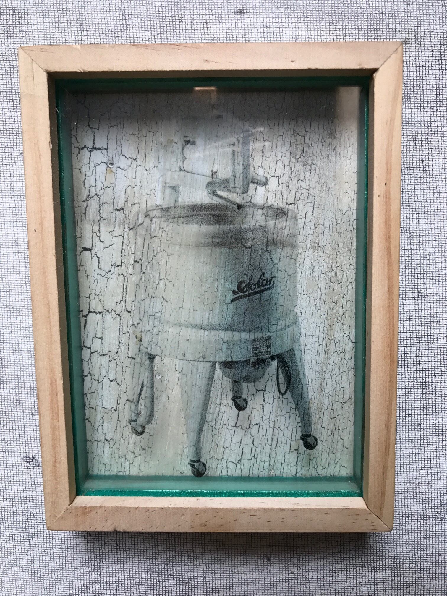 素材:ミクストメディア(木、ガラス、写真を転写した透明フィルム)