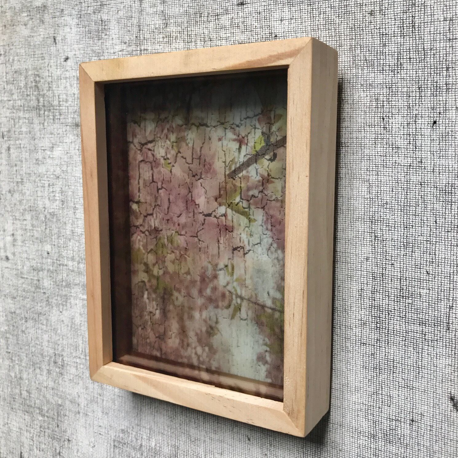 素材:ミクストメディア(木、ガラス、写真を転写した透明フィルム)
