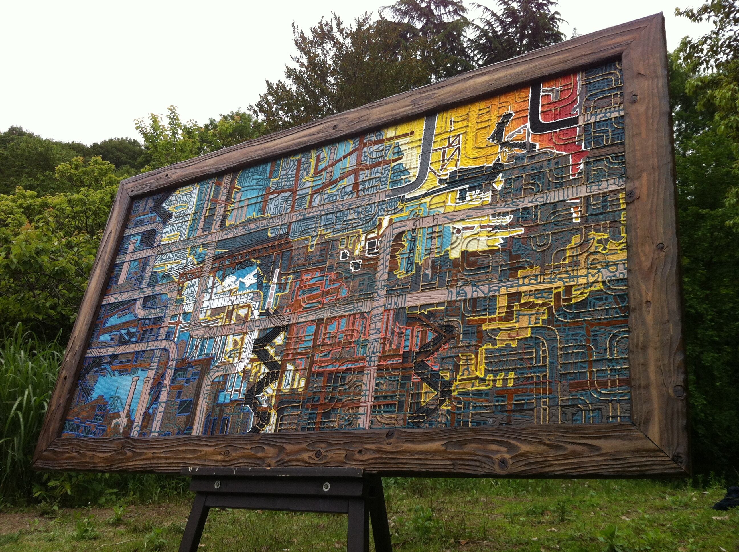 素材:布を張ったベニヤ板(コンパネ)にペイント
