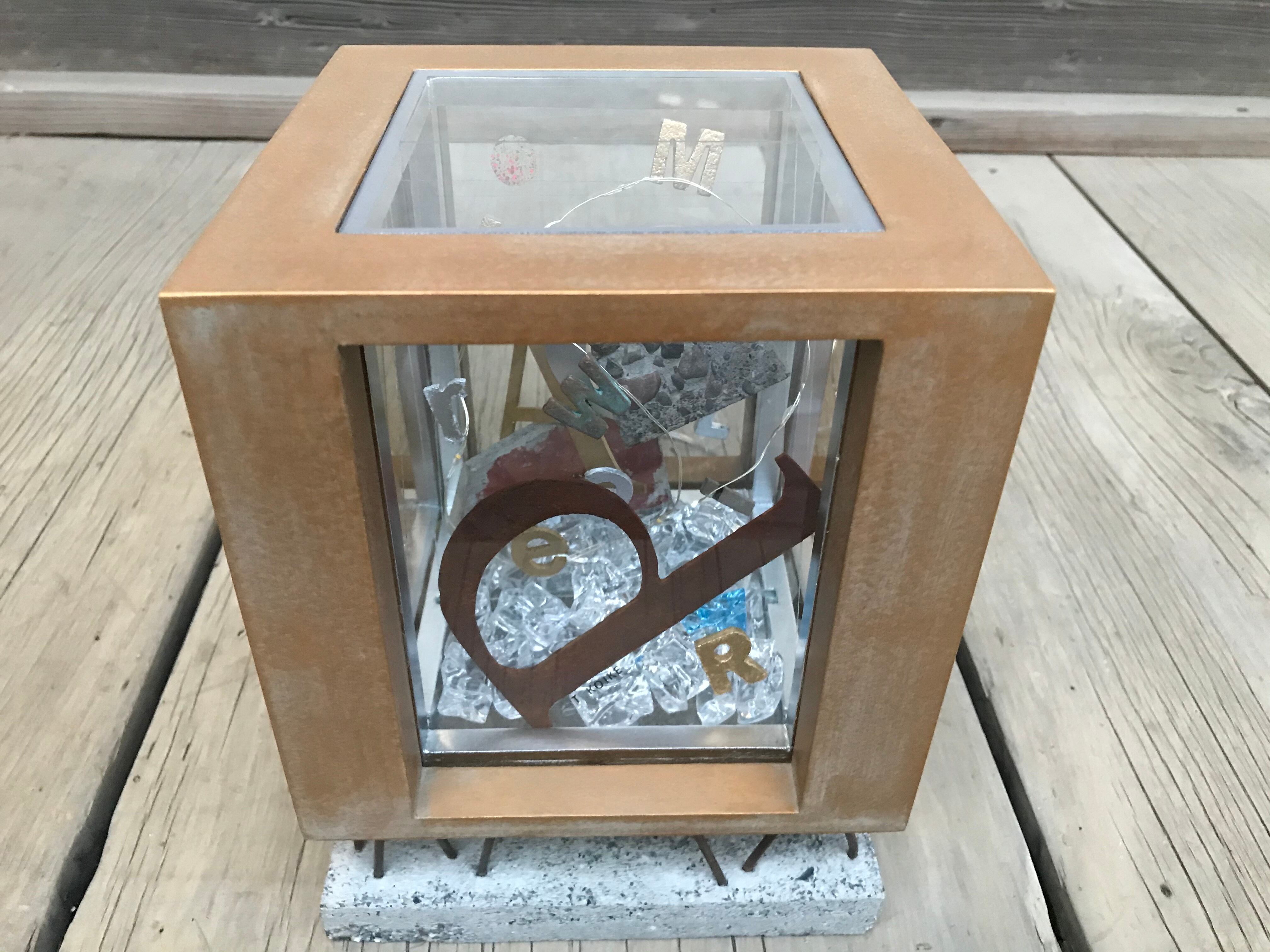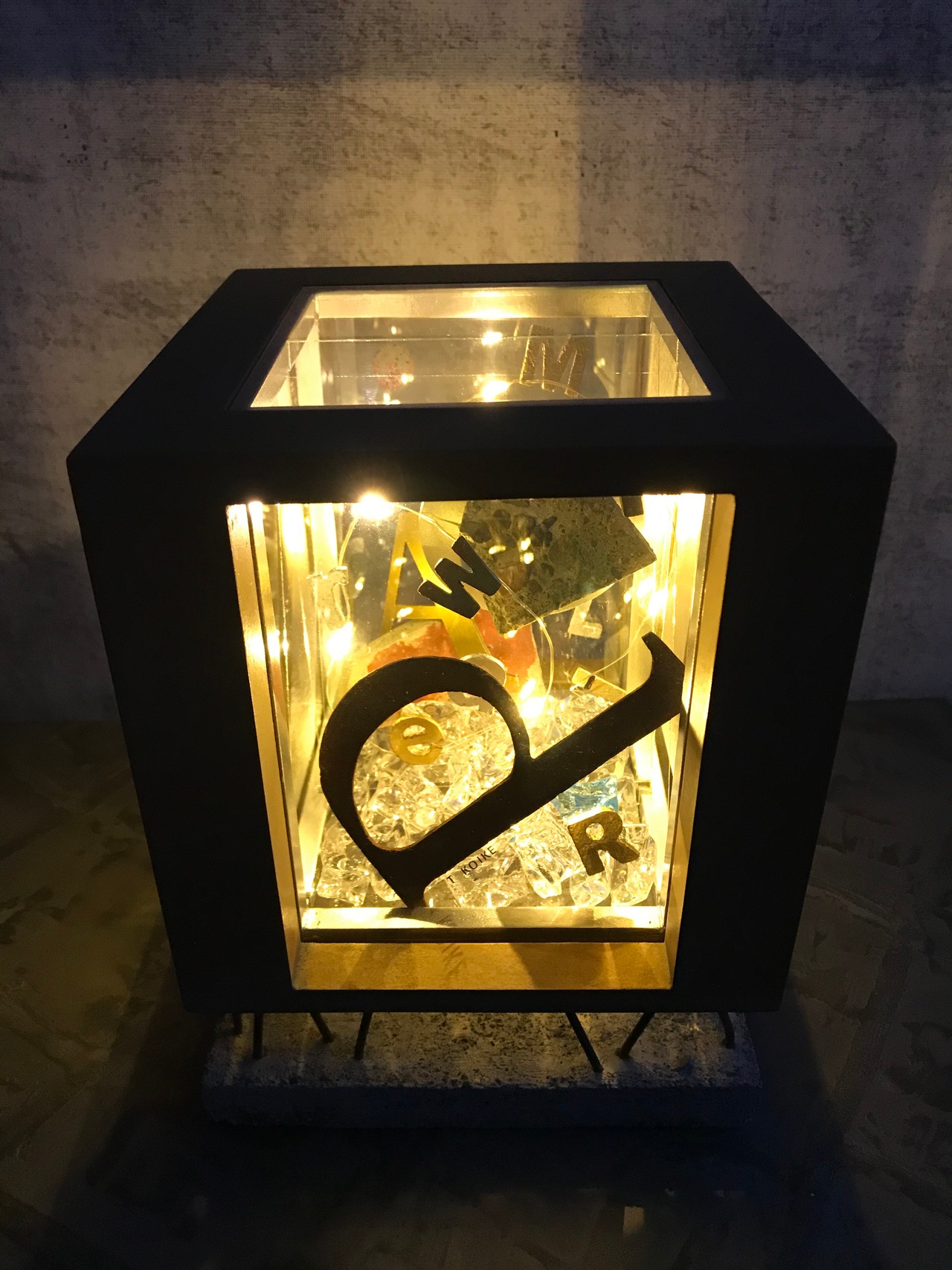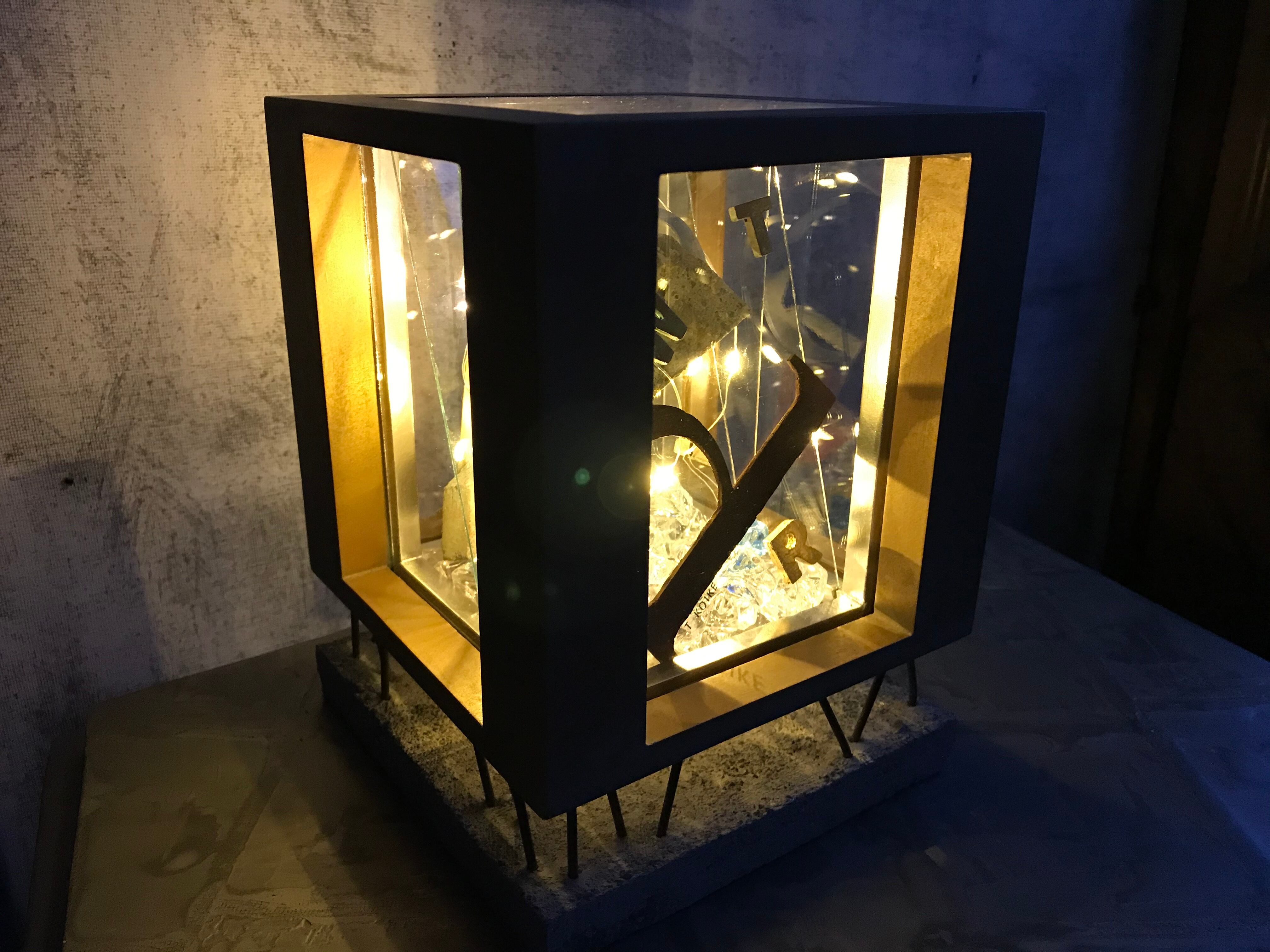 作品内部には家庭用のコンセントを電源とする5灯の小さなLED電球を設置。
