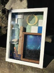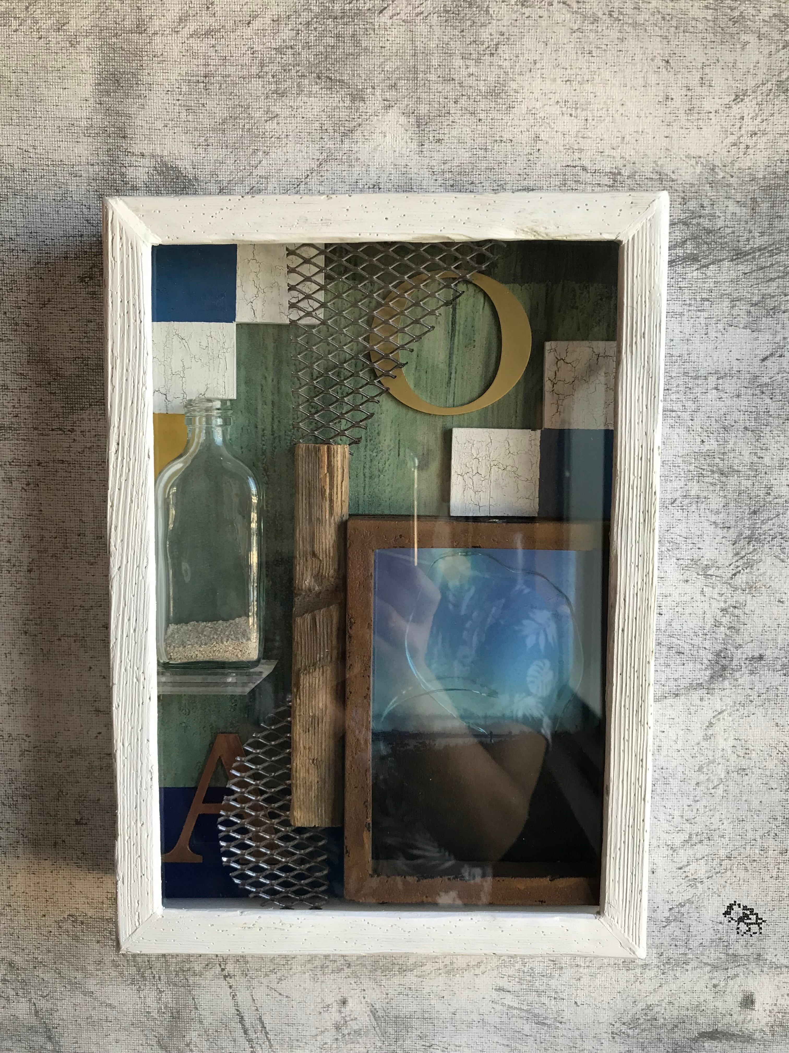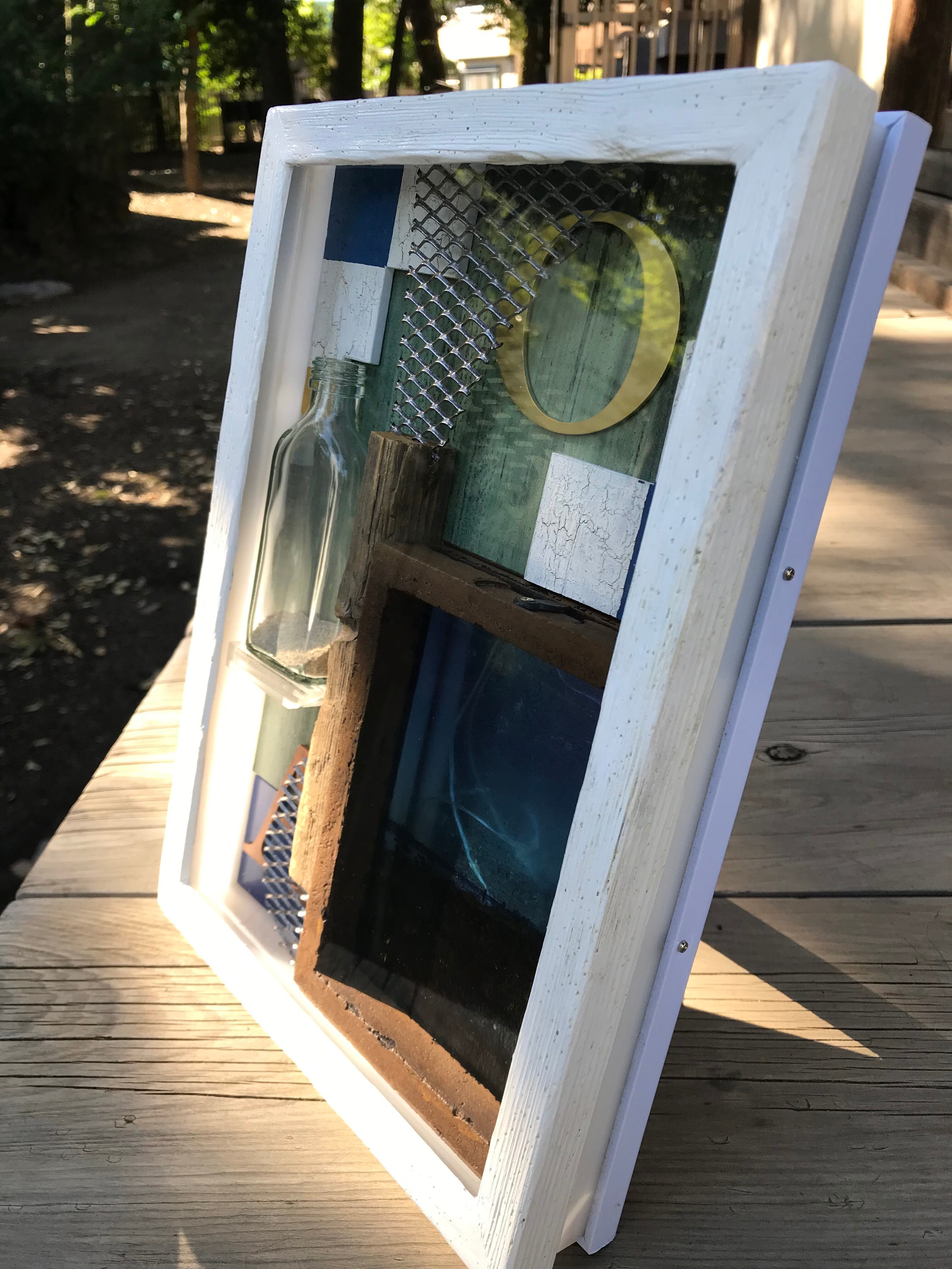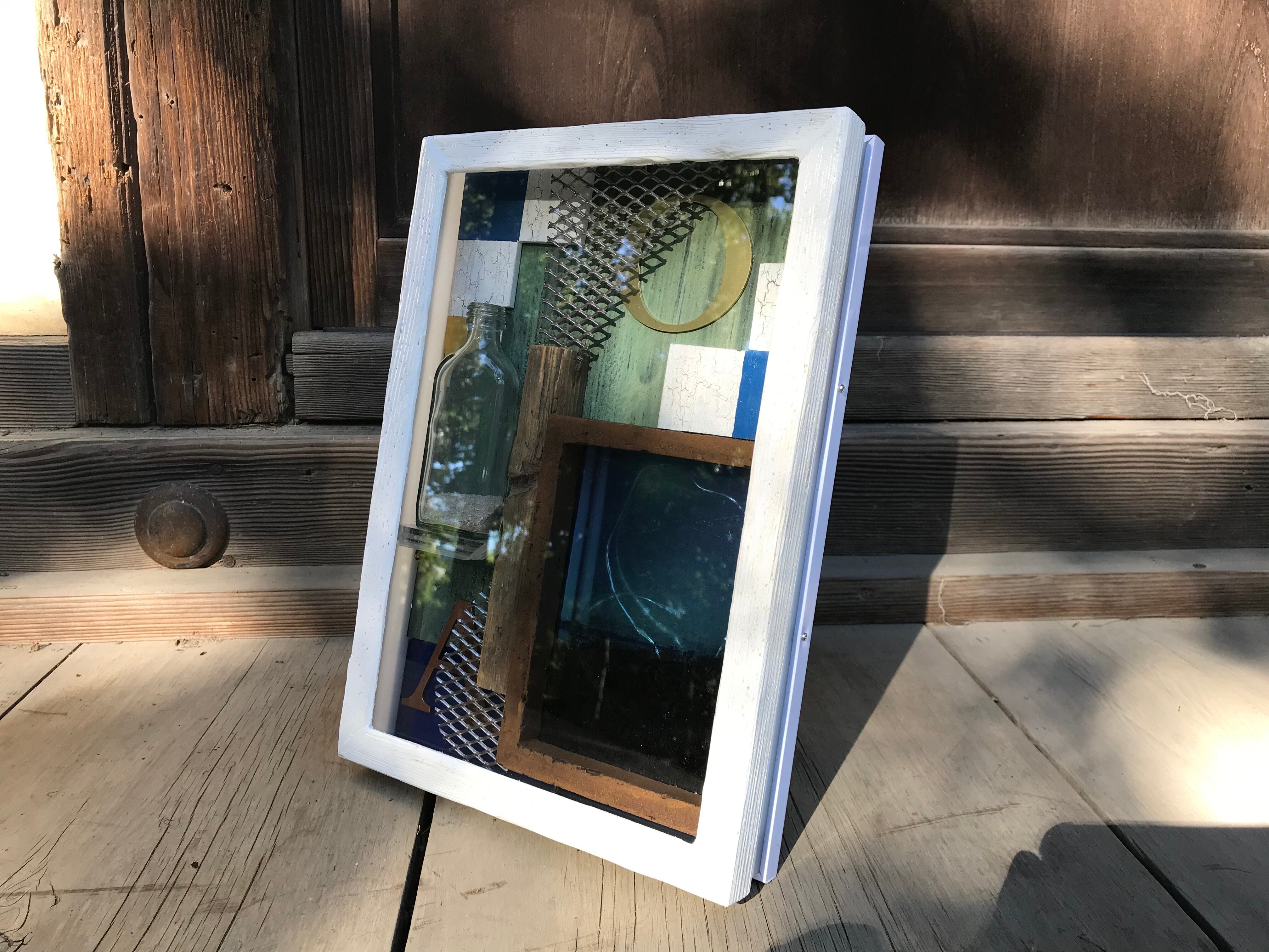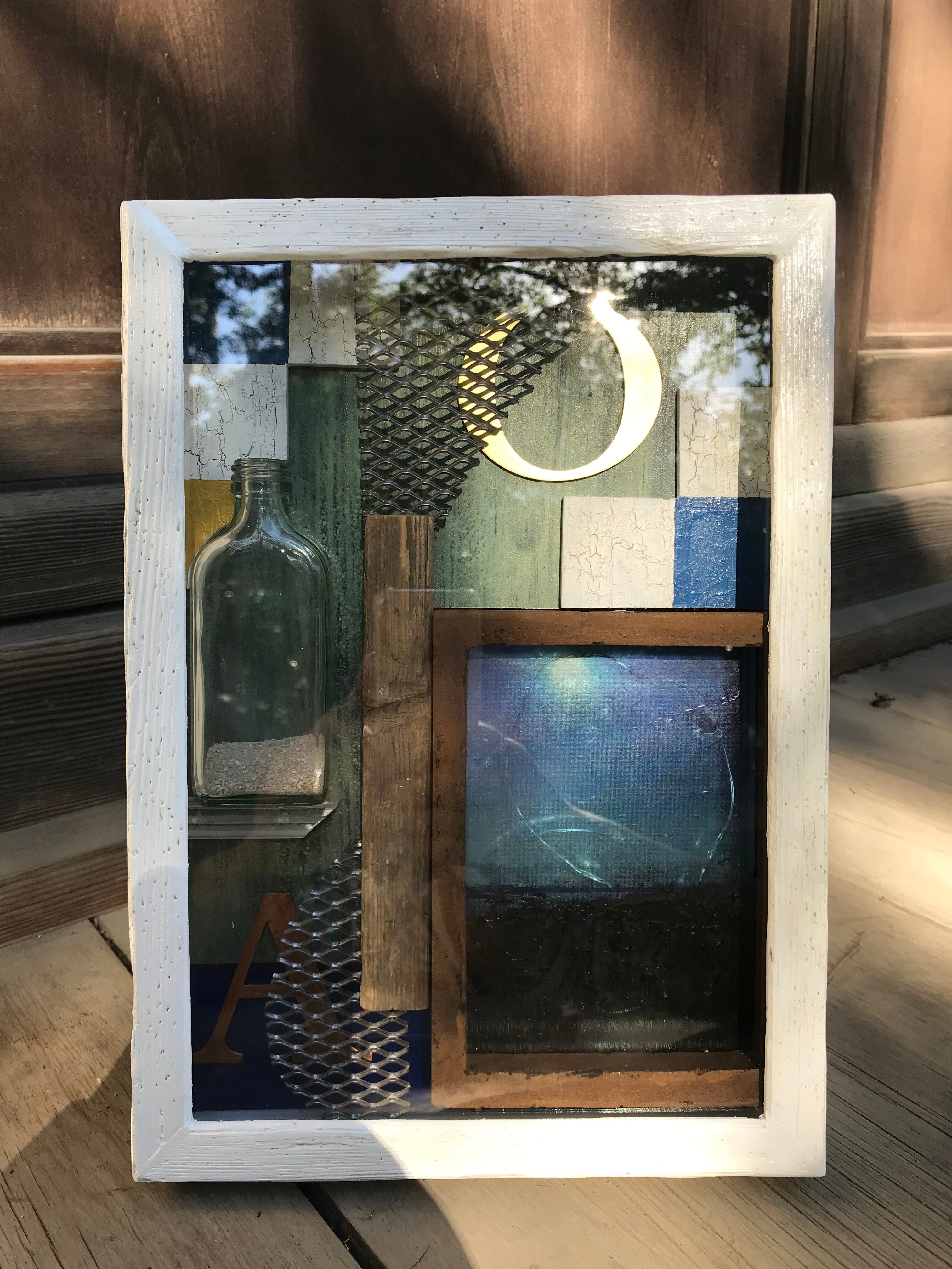 素材:木、ガラス板、ガラス瓶、砂、アクリル板、鉄の網、LED電球、水性塗料、ほか