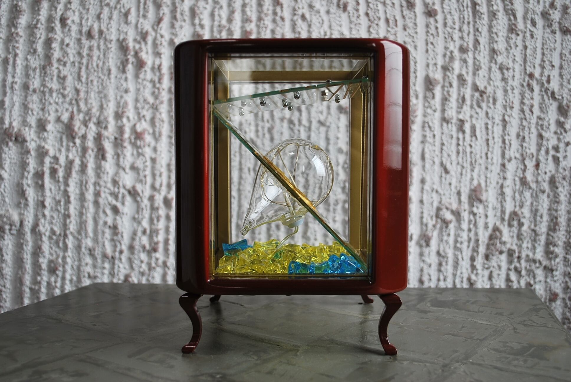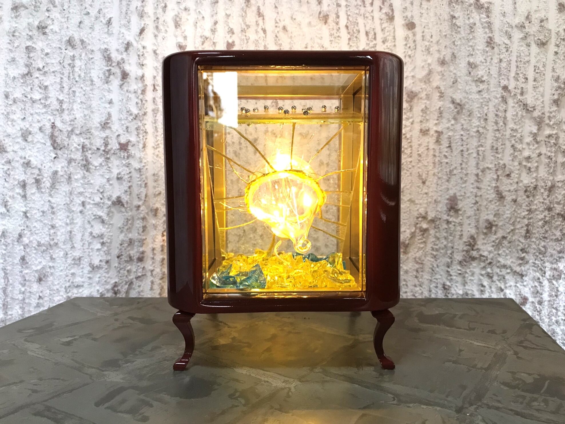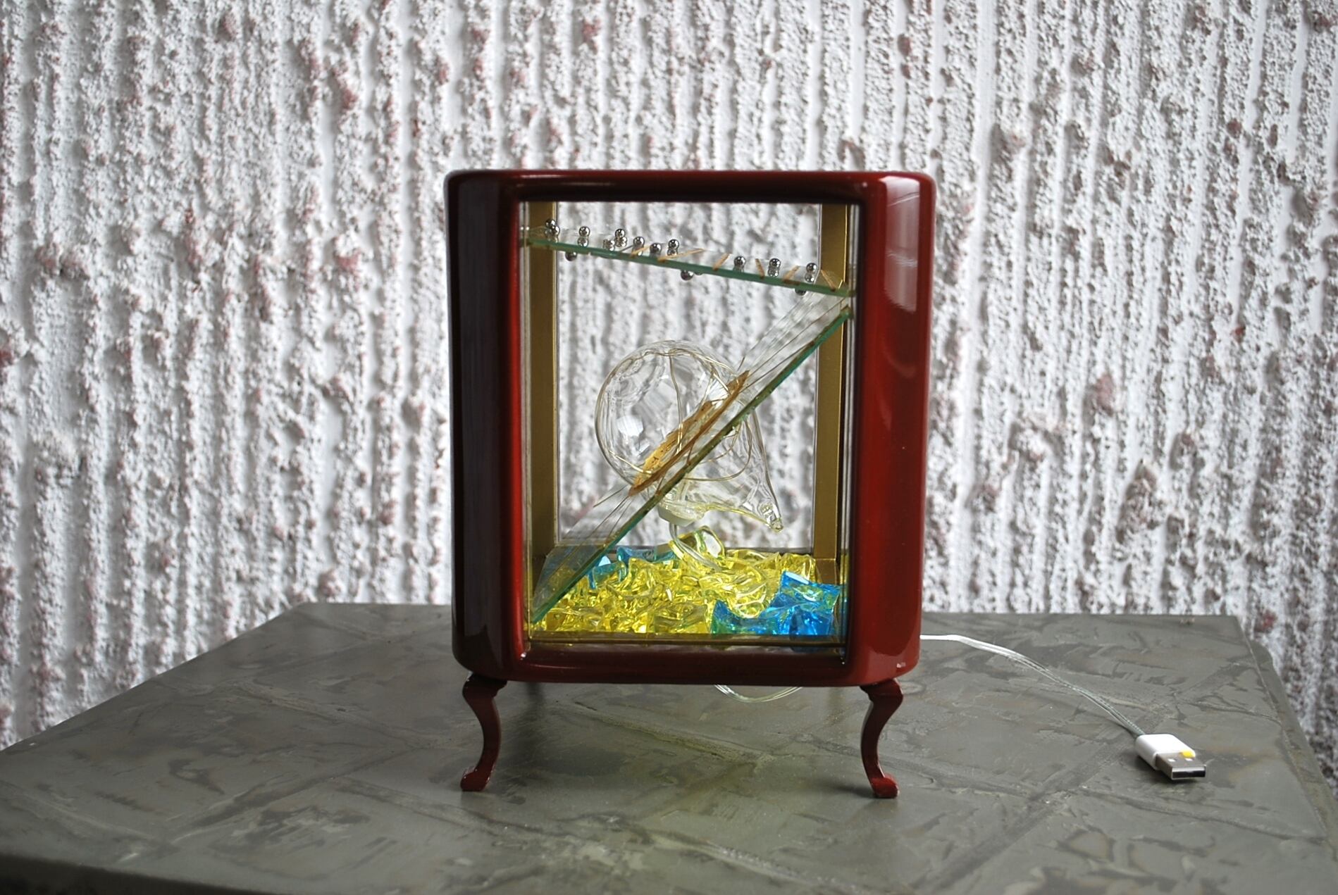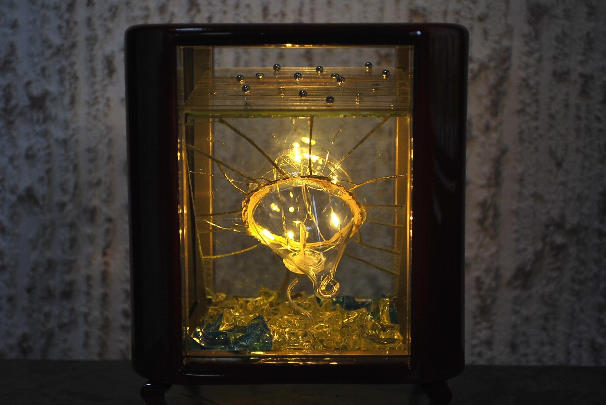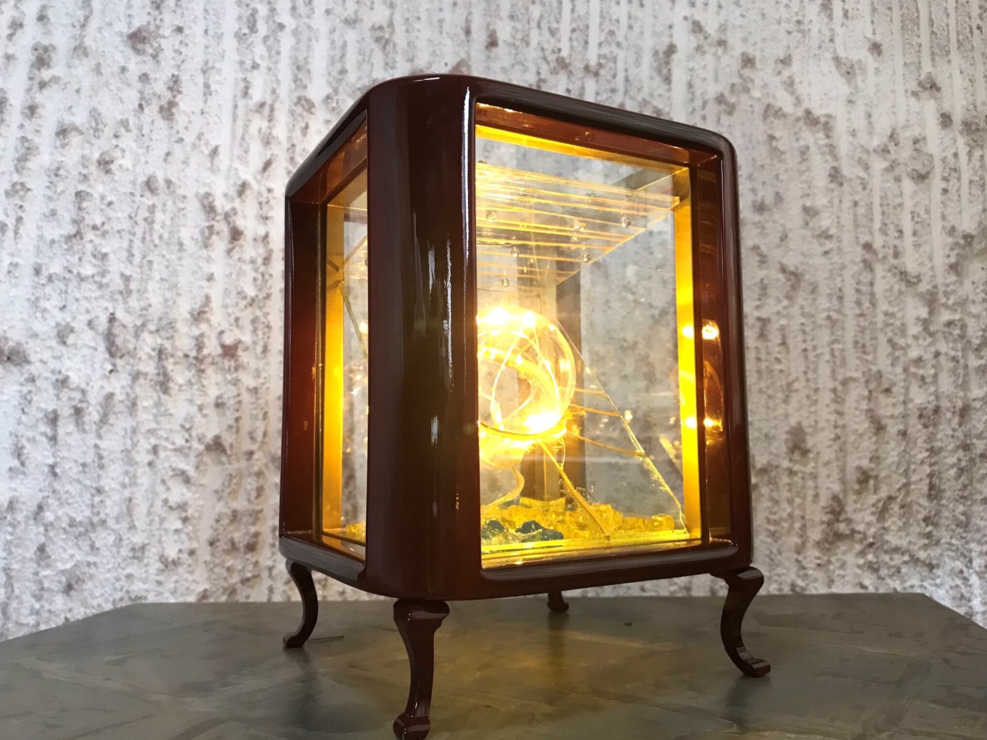 作品内部には家庭用のコンセントを電源とする5灯の小さなLED電球を設置。