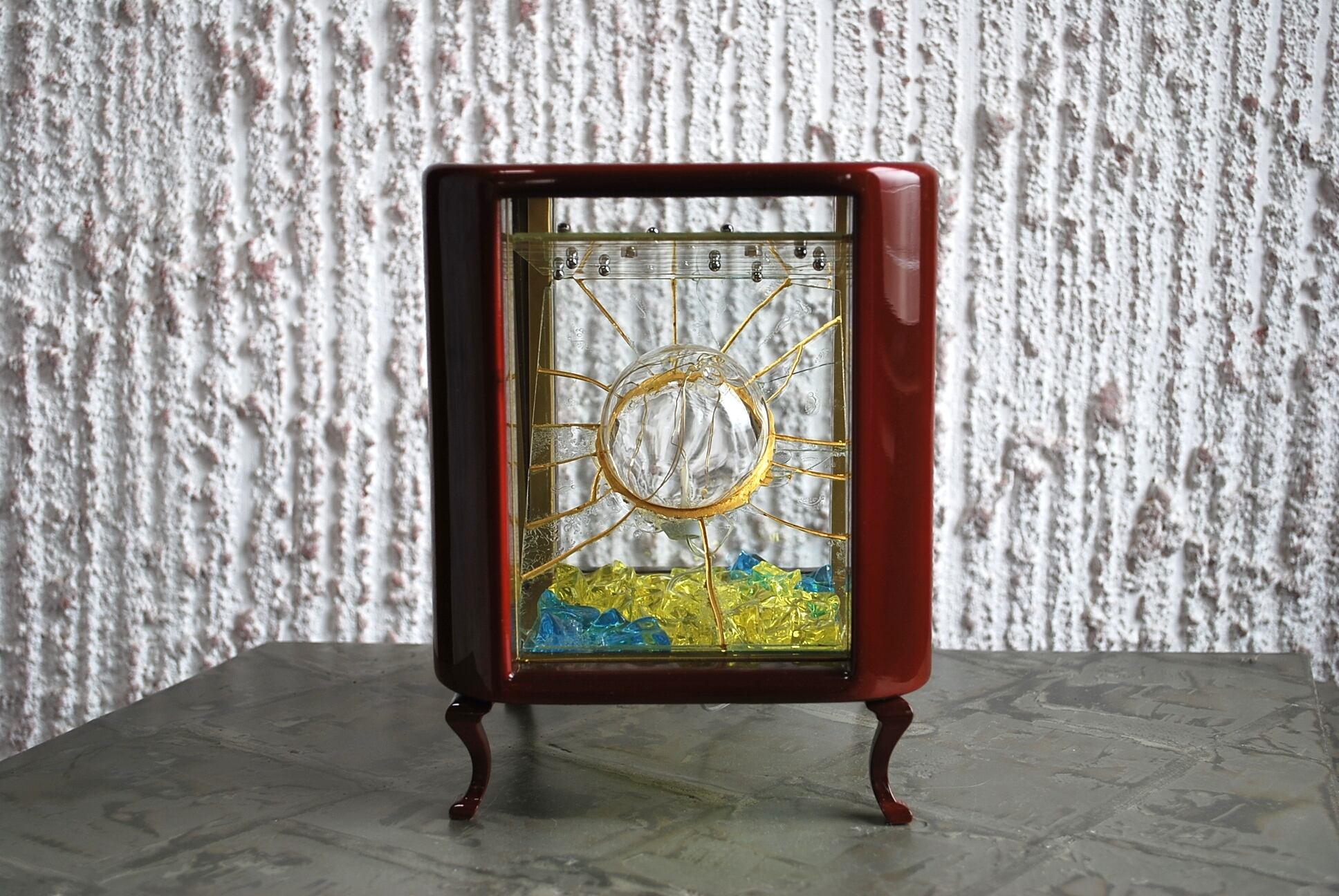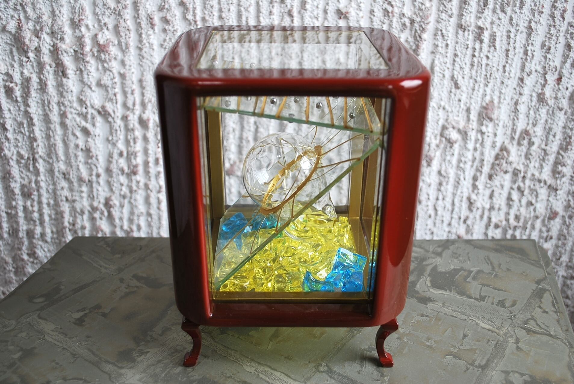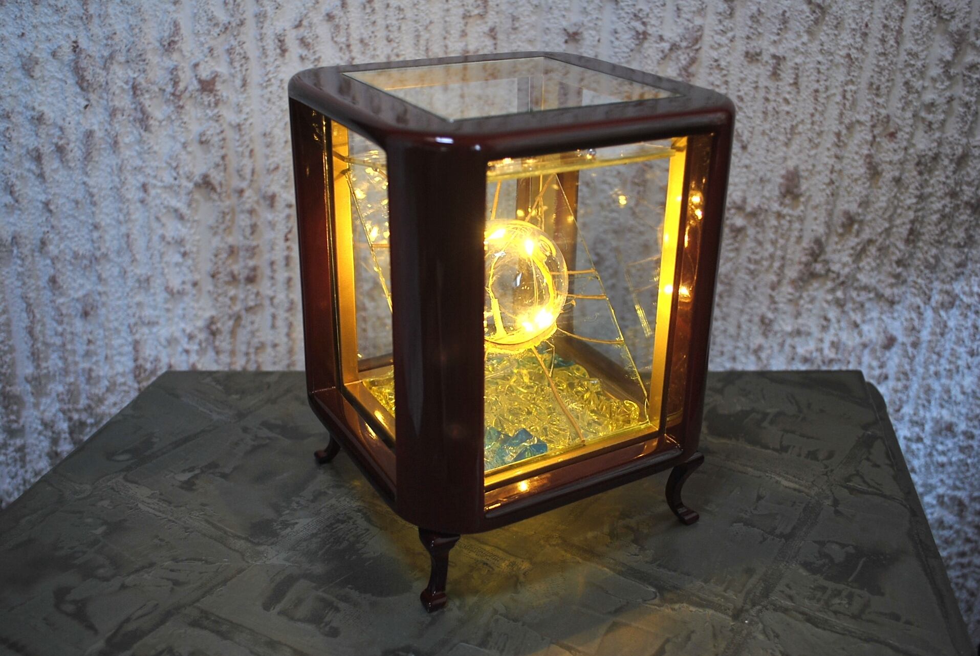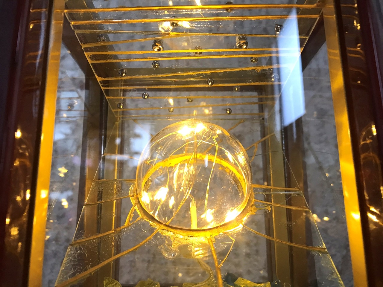 作品内部には家庭用のコンセントを電源とする5灯の小さなLED電球を設置。