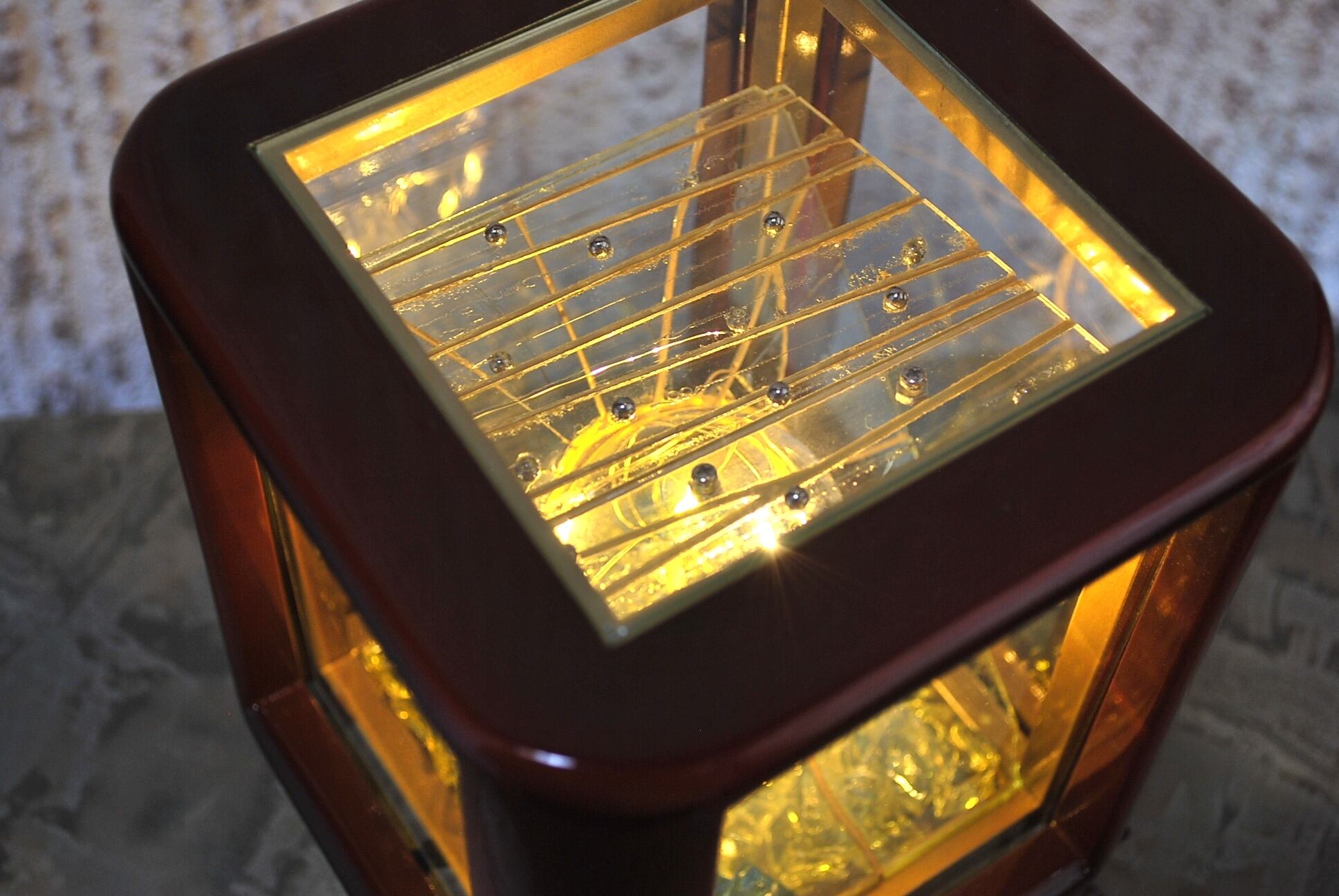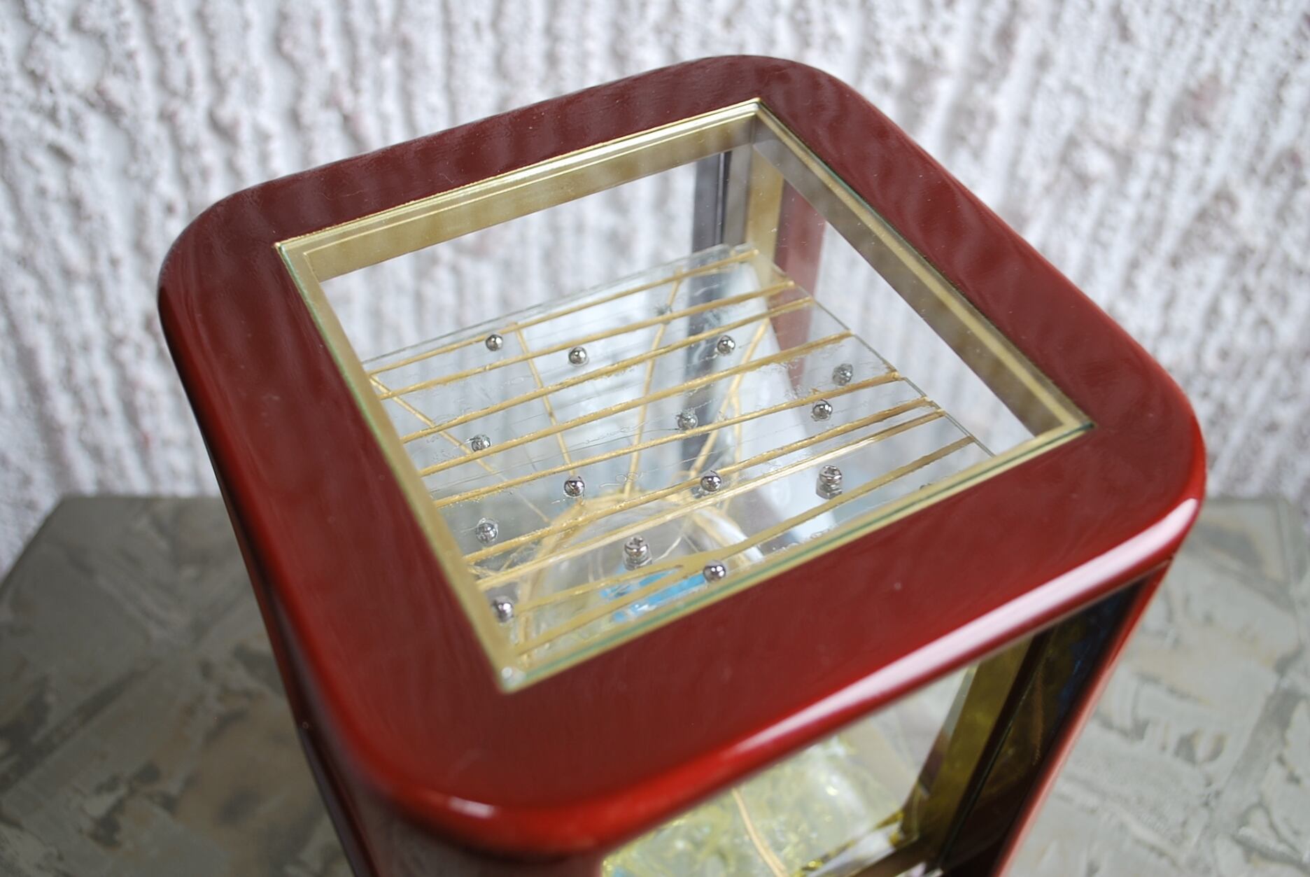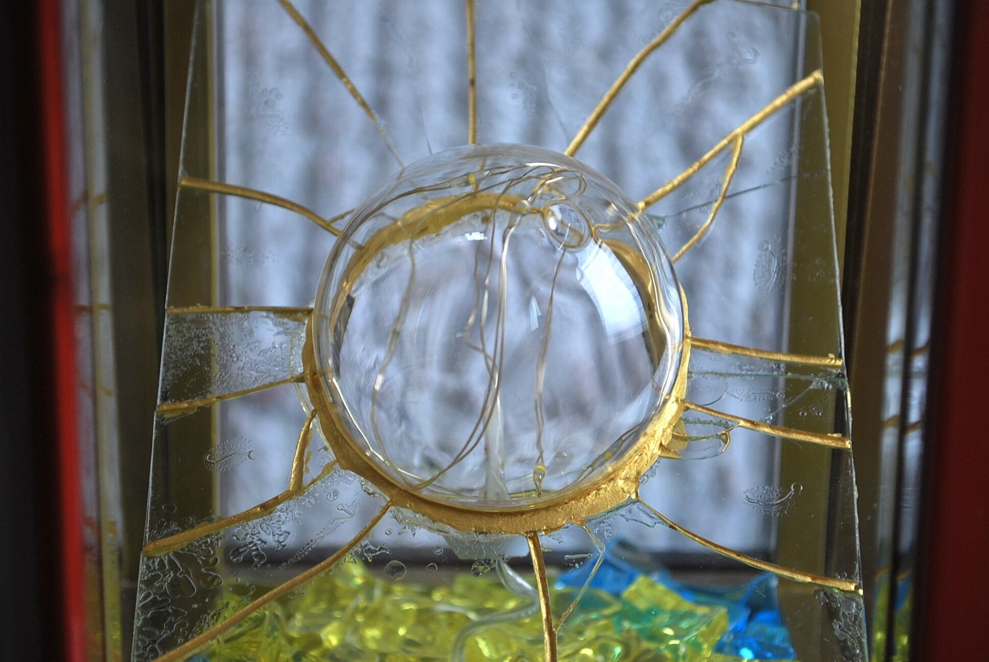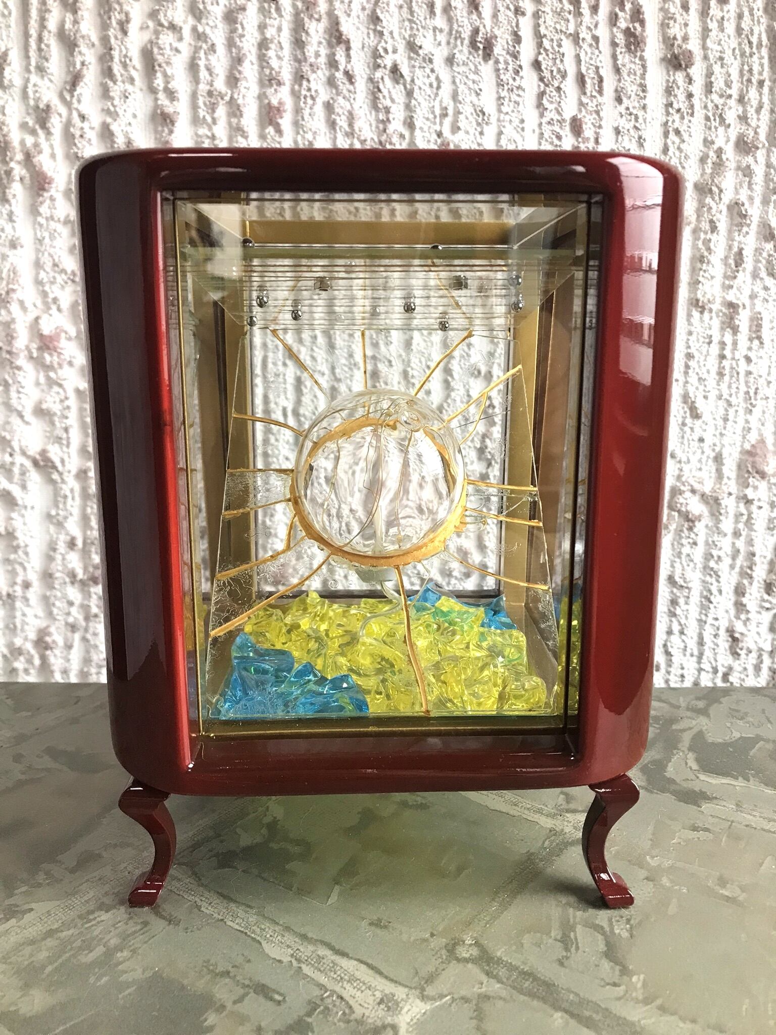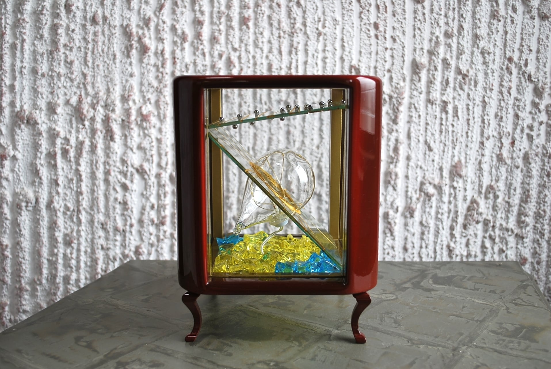 作品内部には家庭用のコンセントを電源とする5灯の小さなLED電球を設置。